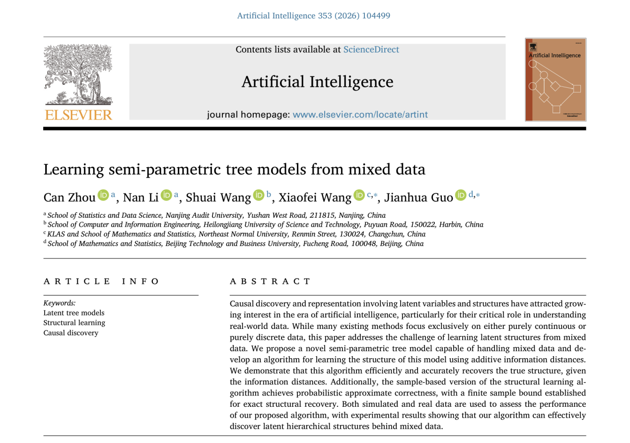 近日,南京審計(jì)大學(xué)統(tǒng)計(jì)與數(shù)據(jù)科學(xué)學(xué)院講師周燦、李南,聯(lián)合黑龍江科技大學(xué)講師王帥、東北師范大學(xué)教授王曉...