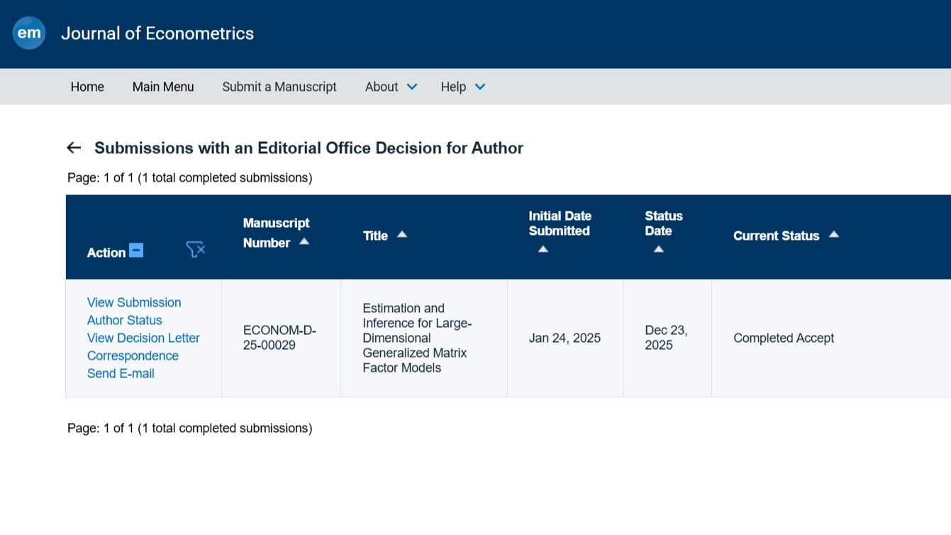 我校博士生張彤科研成果被計(jì)量經(jīng)濟(jì)學(xué)頂刊JOE接收