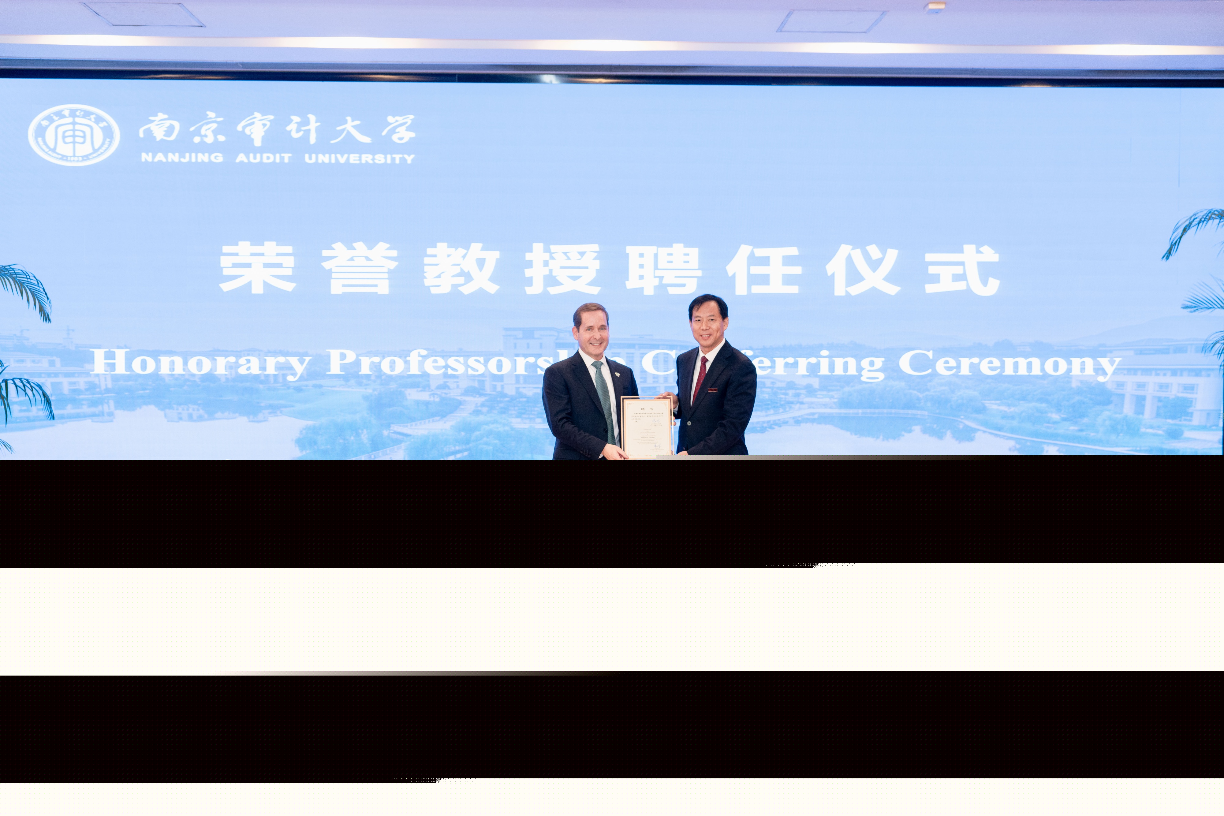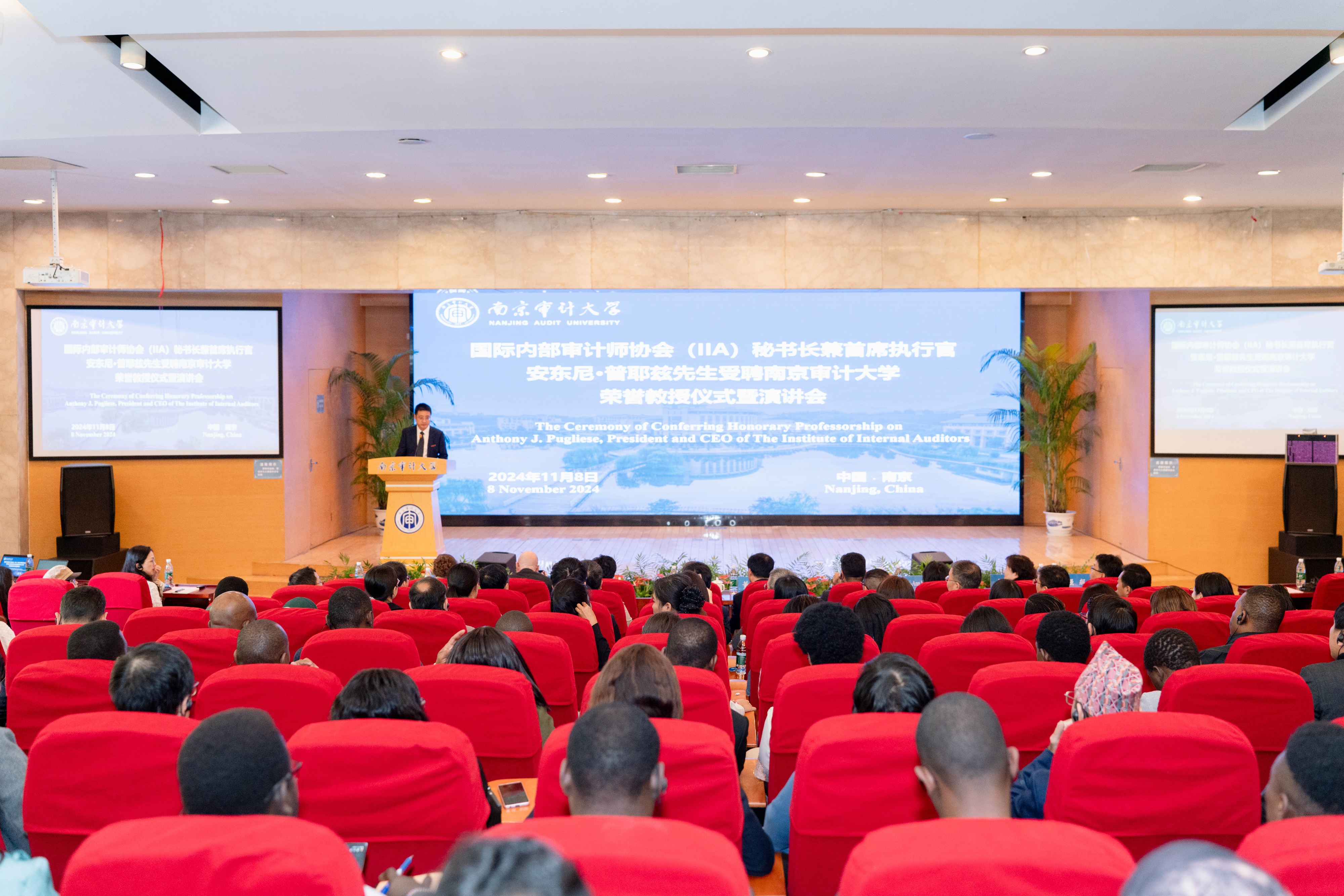 今天,國(guó)際內(nèi)部審計(jì)師協(xié)會(huì)秘書長(zhǎng)兼首席執(zhí)行官安東尼·普耶茲先生受聘南京審計(jì)大學(xué)榮譽(yù)教授儀式暨演講會(huì)在敏達(dá)學(xué)術(shù)報(bào)告廳舉行。國(guó)際內(nèi)部審計(jì)師協(xié)會(huì)、中國(guó)內(nèi)部審計(jì)協(xié)會(huì)相關(guān)負(fù)責(zé)人,我校黨委書記、校長(zhǎng)董必榮,黨委常委、副校長(zhǎng)盧亞娟等出席聘任儀式,相關(guān)部門負(fù)責(zé)人及師生代表參加。黨委常委、副校長(zhǎng)李乾文主持儀式。