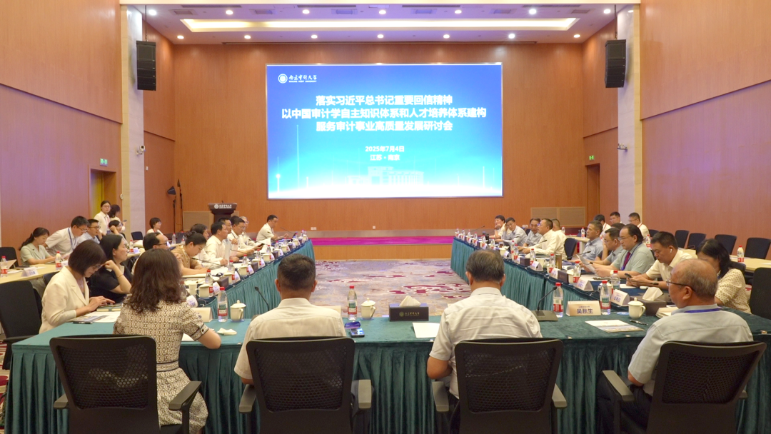 7月4日下午,落實習近平總書記重要回信精神以中國審計學自主知識體系和人才培養(yǎng)體系建構服務審計事業(yè)高質量發(fā)展研討會在南審舉行。來自中國審計學會、中國內部審計協(xié)會以及北京大學、中國人民大學、西南財經(jīng)大學、上海國家會計學院、中南財經(jīng)政法大學、沈陽農(nóng)業(yè)大學、天津財經(jīng)大學、山東財經(jīng)大學、西南政法大學、山西財經(jīng)大學等高校的30余位審計會計理論和實務界專家共聚南審,圍繞“中國審計學自主知識體系和人才培養(yǎng)體系建構服務審計事業(yè)高質量發(fā)展”的主題展開研討。我校黨委常委、副校長姜海主持會議。