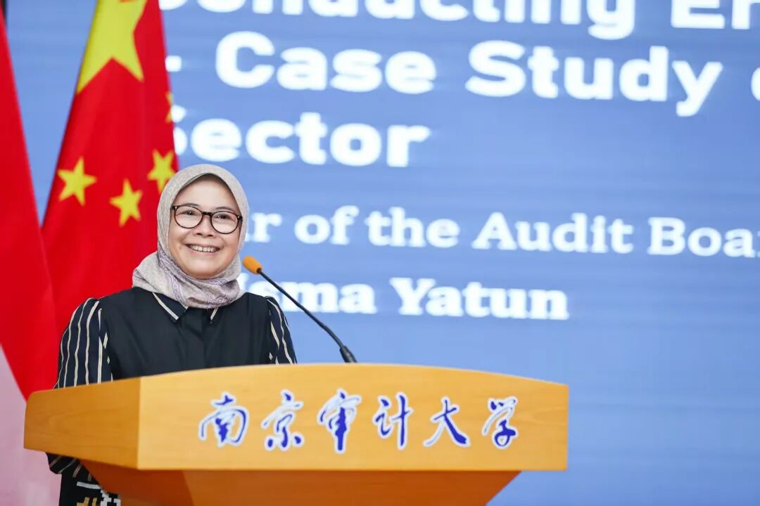 亞頓博士以《印度尼西亞最高審計(jì)機(jī)關(guān)在環(huán)境審計(jì)中的角色:以林業(yè)部門審計(jì)為例》,系統(tǒng)介紹了印尼最高審計(jì)機(jī)關(guān)在環(huán)境審計(jì)特別是林業(yè)審計(jì)領(lǐng)域的職能與案例,她從印尼森林資源的現(xiàn)狀出發(fā),講述政府應(yīng)對(duì)氣候變化的政策干預(yù)、印度尼西亞審計(jì)委員會(huì)的法定審計(jì)職責(zé),結(jié)合泥炭地管理、紅樹林修復(fù)、碳排放監(jiān)測(cè)等具體審計(jì)實(shí)踐,展示了通過技術(shù)工具和國(guó)際合作推動(dòng)審計(jì)建議落實(shí)、提升氣候治理能力的成果。她還引用“愚公移山”的典故,以中國(guó)生態(tài)系統(tǒng)修復(fù)為范例,呼吁多方協(xié)作和數(shù)據(jù)驅(qū)動(dòng)的決策以實(shí)現(xiàn)可持續(xù)環(huán)境管理。