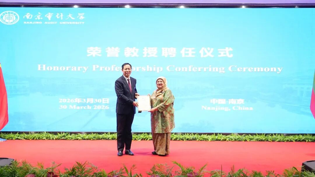 3月30日,馬來西亞審計署審計長旺·蘇拉雅女士、土耳其審計法院院長梅廷·耶內爾先生、馬爾代夫審計署審計長侯賽因·尼亞茲先生受聘南京審計大學榮譽教授。