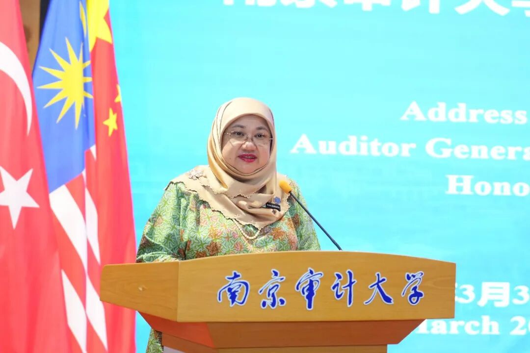 馬來西亞審計署審計長旺?蘇拉雅教授表示,非常榮幸成為南京審計大學榮譽教授 。她期待以此次受聘為契機,馬來西亞審計署進一步加強與南京審計大學在審計教育方面的交流。